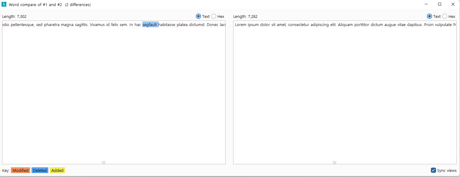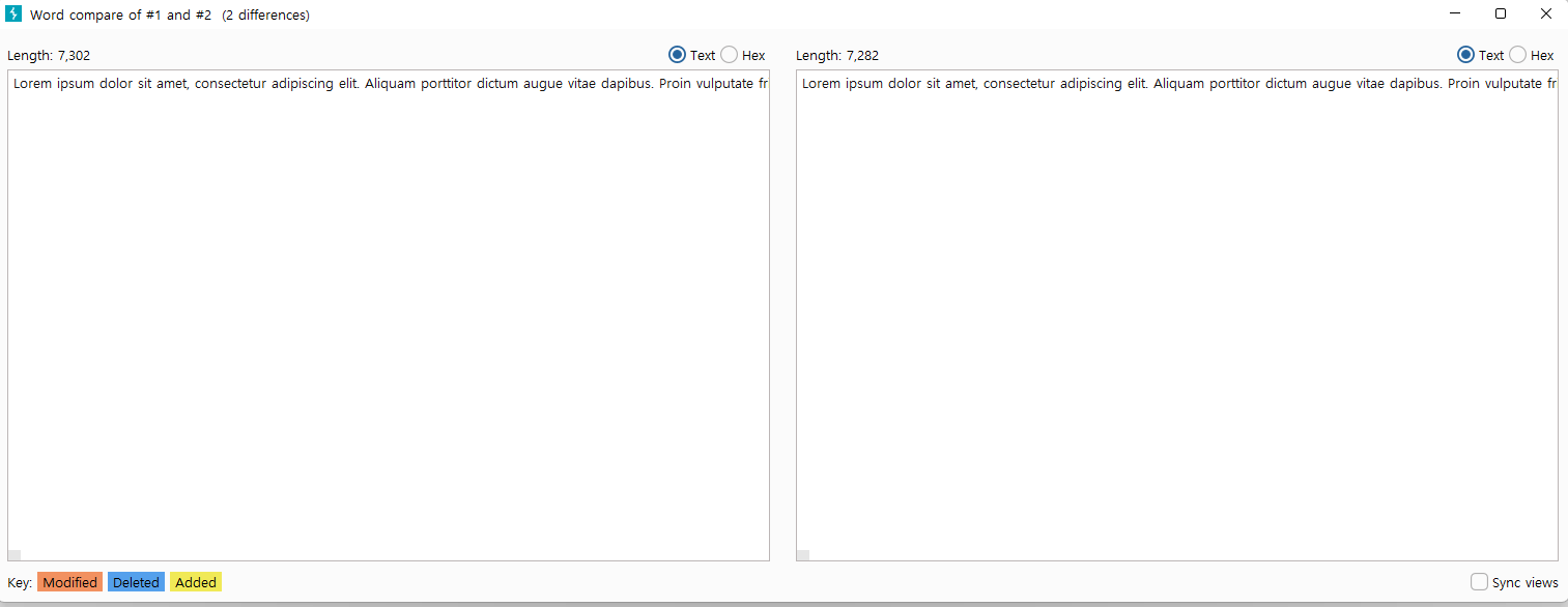 이런식으로 나옵니다 words는 말 그대로 단어 하나하나를 비교해주고 bytes는 말 그대로 byte단위로 비교를 해줍니다.