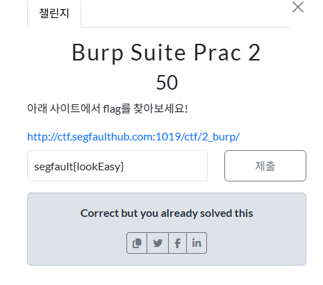 그래서 이 사이트에서 버프스위트로 flag를 찾으면 성공입니다.