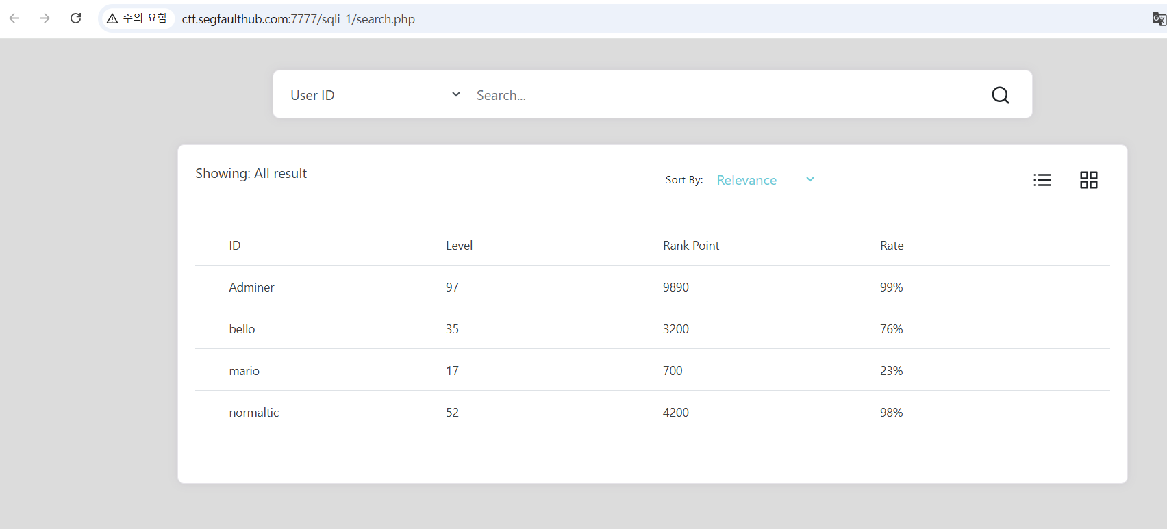 sql 문을 사용했을때 정상적인 동작을 하는걸로 보아 sql 취약점이 확실히 있네요.